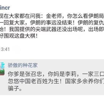 第二是,他们现在换模式了,改成了黑局座,黑金灿荣教授,还自己P图,伪装金教授的朋友圈,说后续中国的高端武器要登场啥的,逼得金教授自己出来辟谣,说这个朋友圈不是他发的。