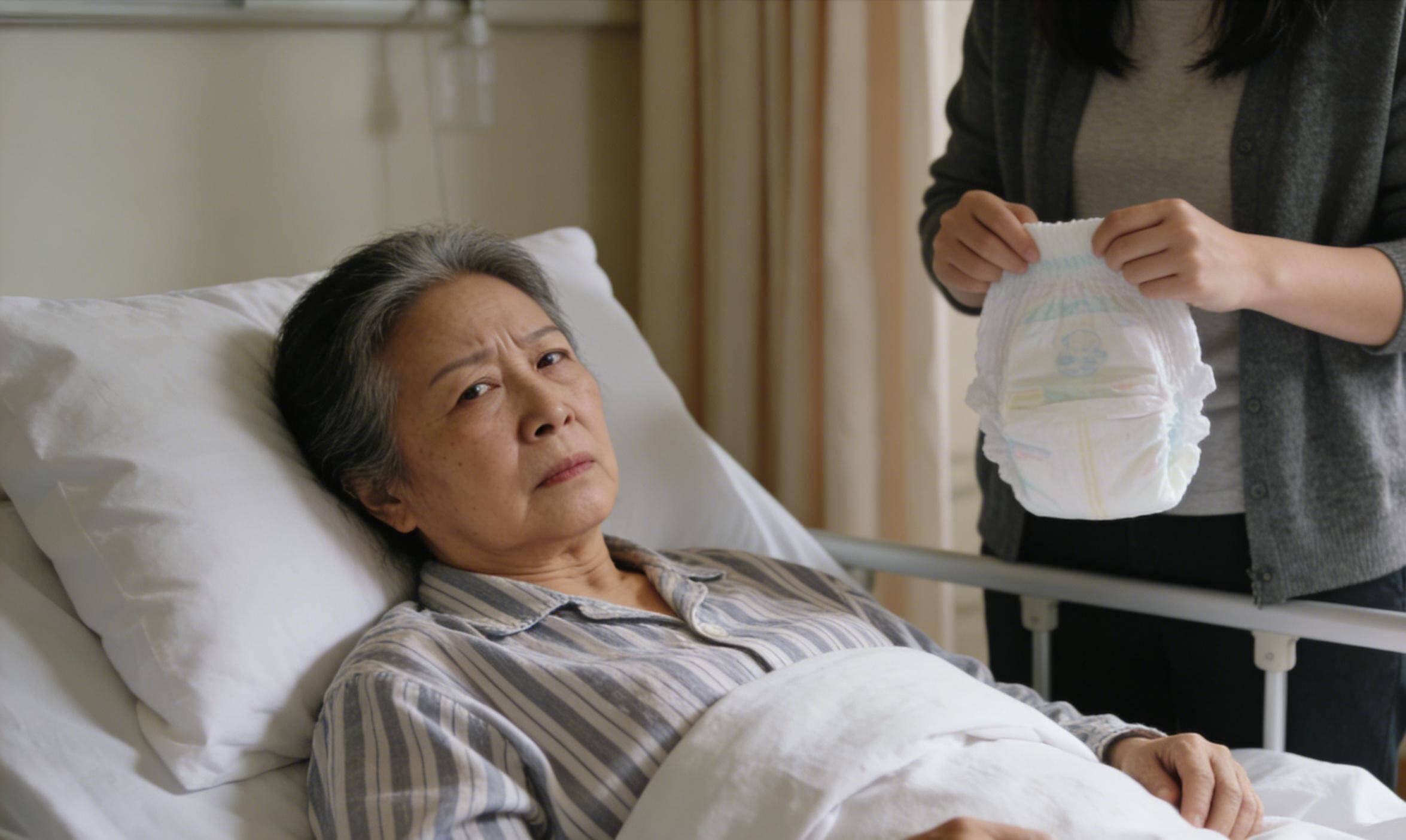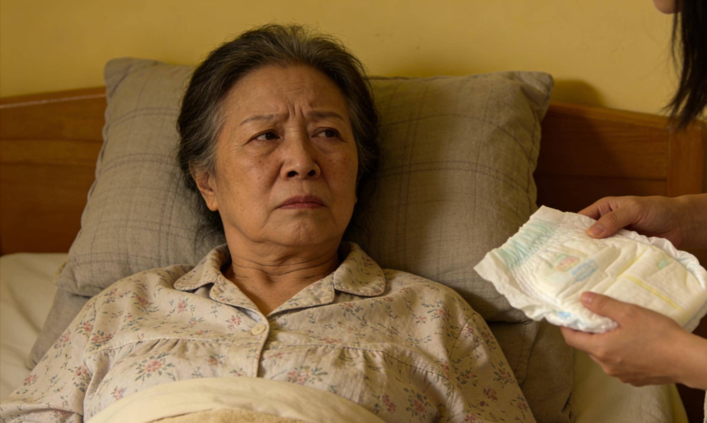 陈丽霞蹲在床边,手里攥着刚拆开的尿不湿,床上的刘玉茹侧躺着,花白的头发凌乱地散在枕头上,屋子里弥漫着一股淡淡的尿骚味——窗户开着,散不掉。
