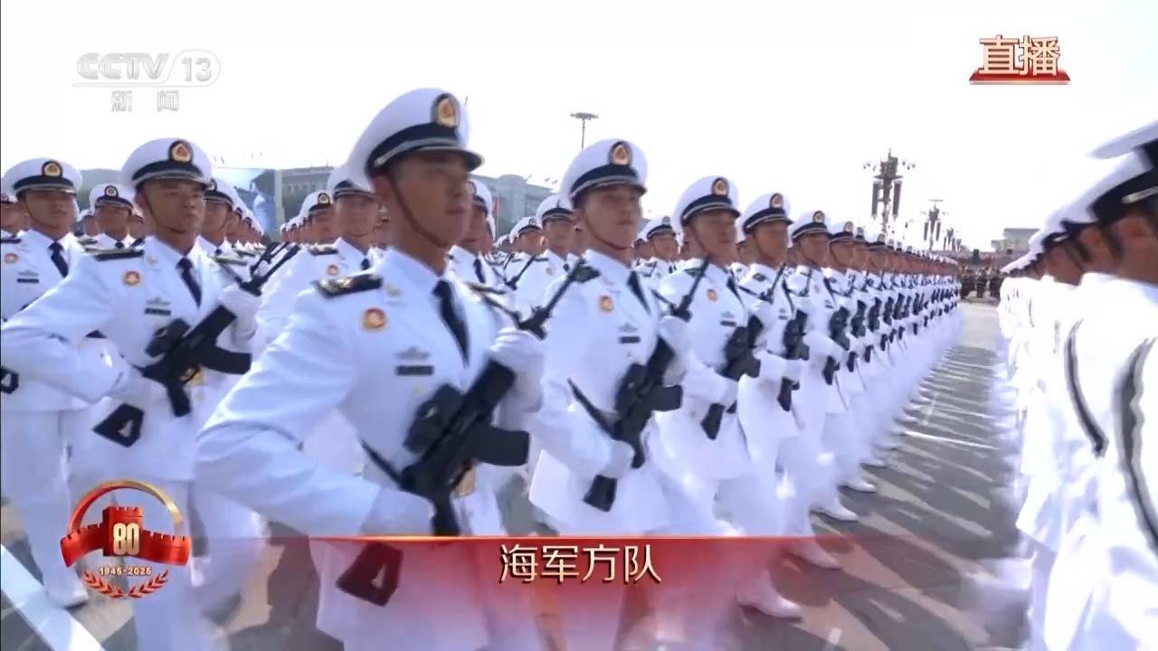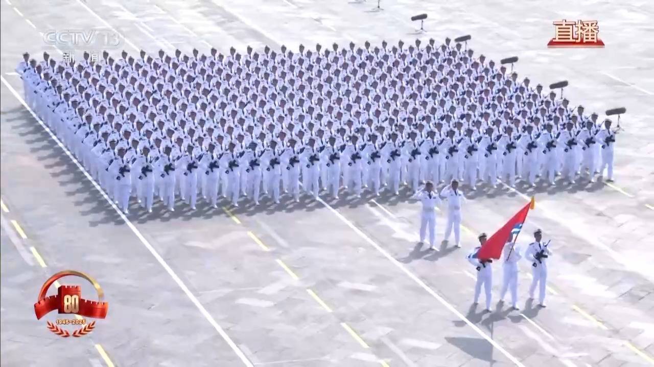 纵横万里海疆,建功远海大洋。海军方队接受检阅。